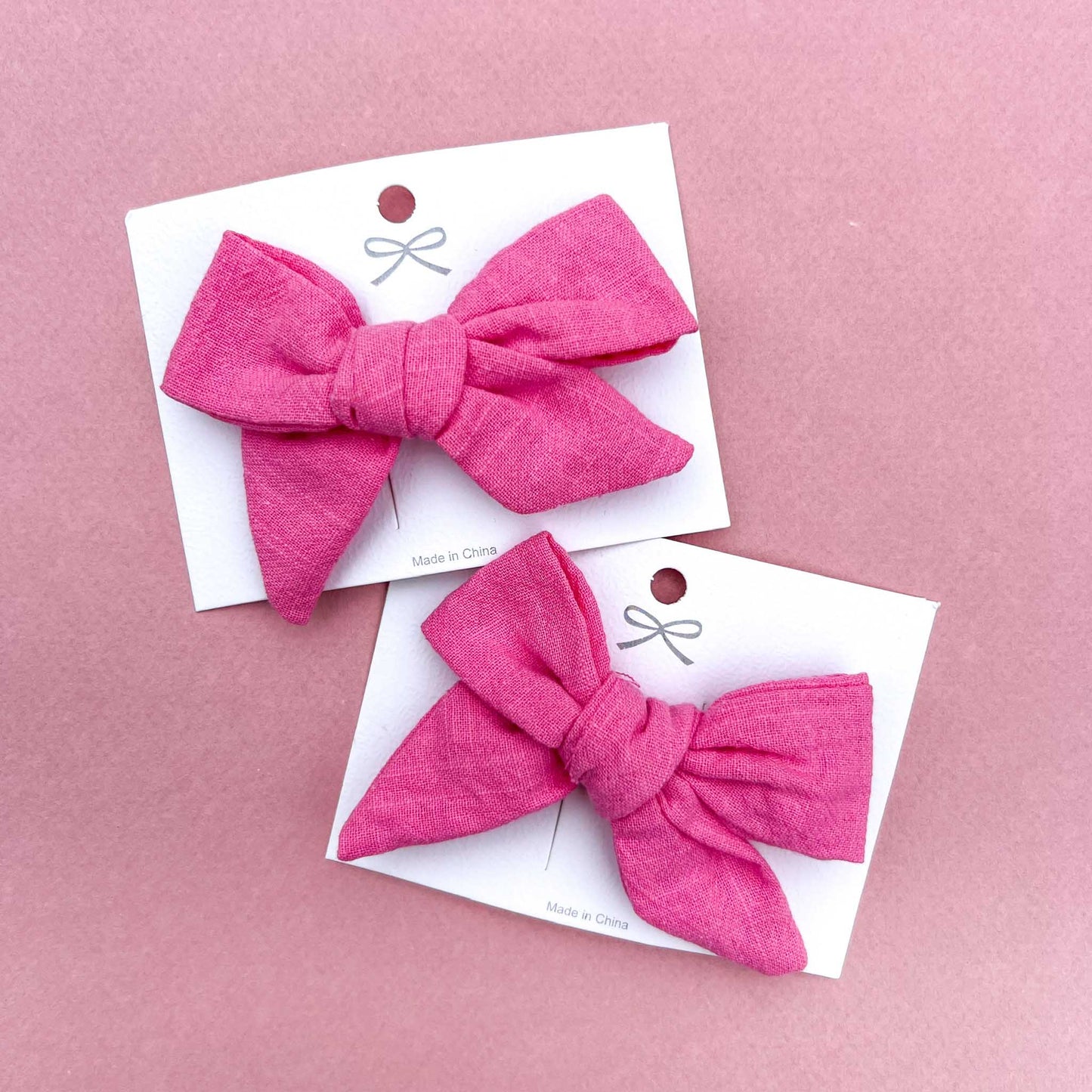 Pink cotton bow on metal clip - 8cm x 5cm