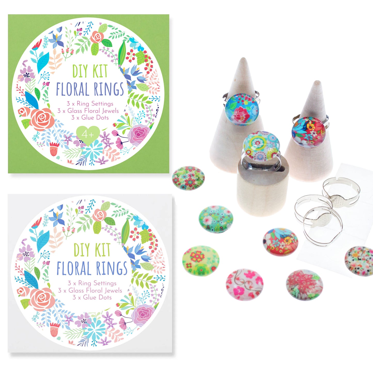 Create these beautiful DIY floral rings. Each pack contains contents to make three glass floral rings for a unique craft.