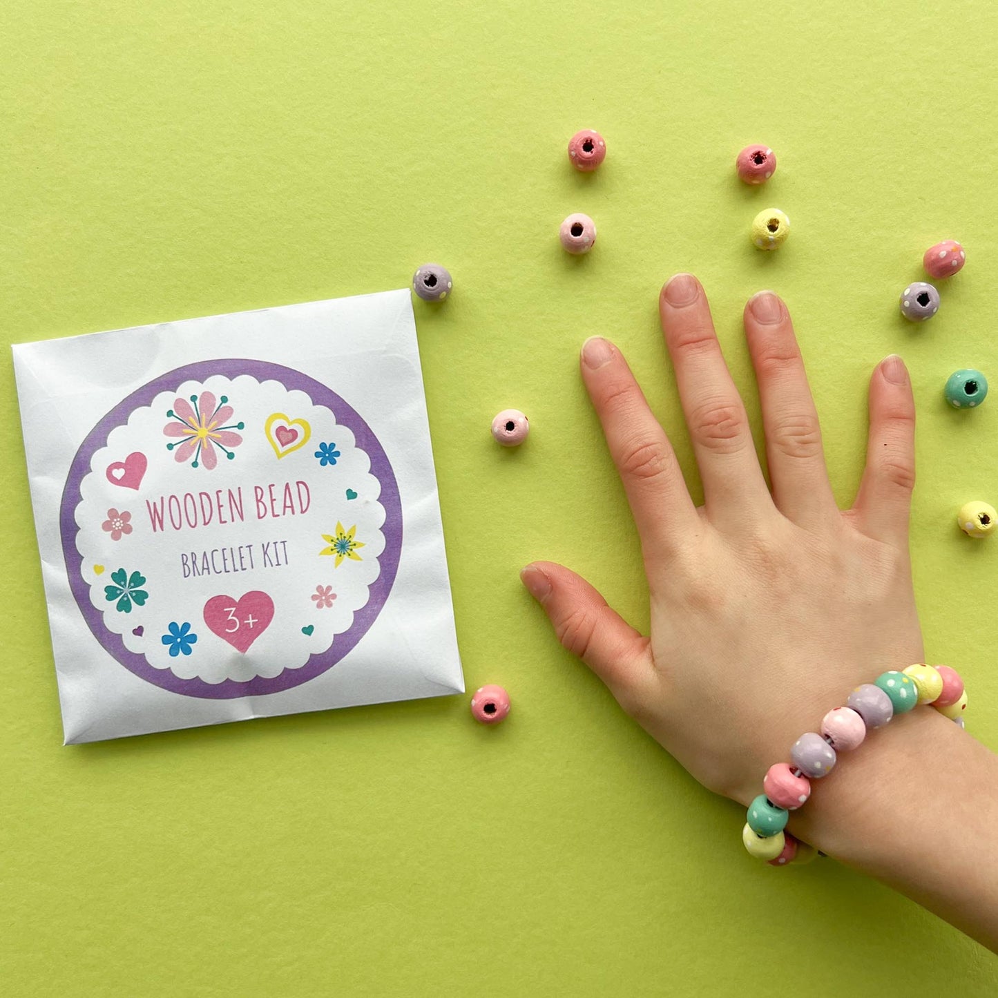 1 x DIY Spotty Wooden Bead Bracelet Kit - in paper envelope - 11cm x 11cm