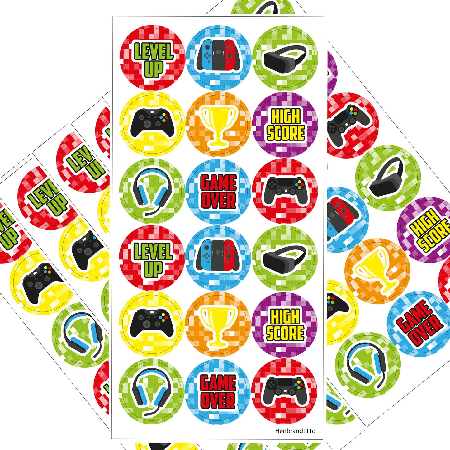 1 x Sheet of Gamer Stickers - 18 stickers per sheet, each sticker is 2.5cm