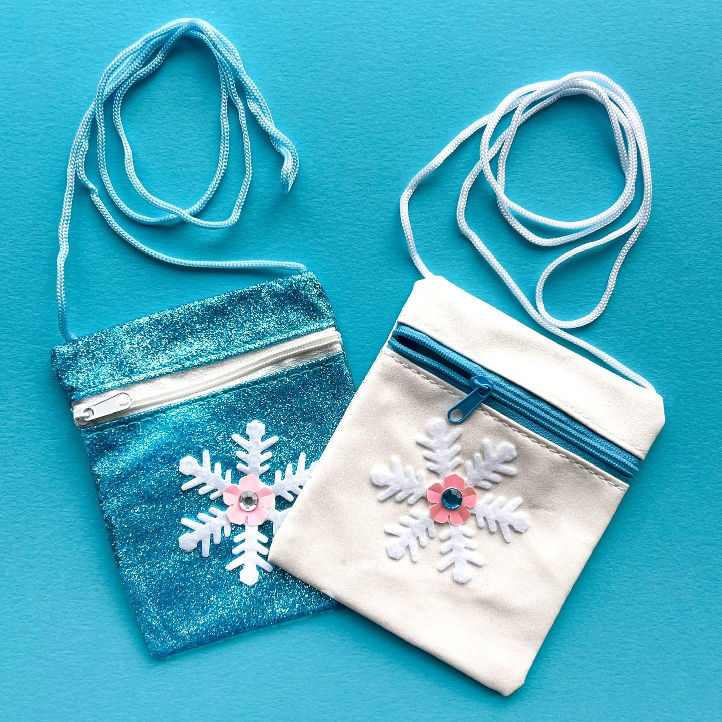 Glitter Snowflake Purse with Shoulder Strap 12cm x 10cm - comes in blue and White, only 1 supplied