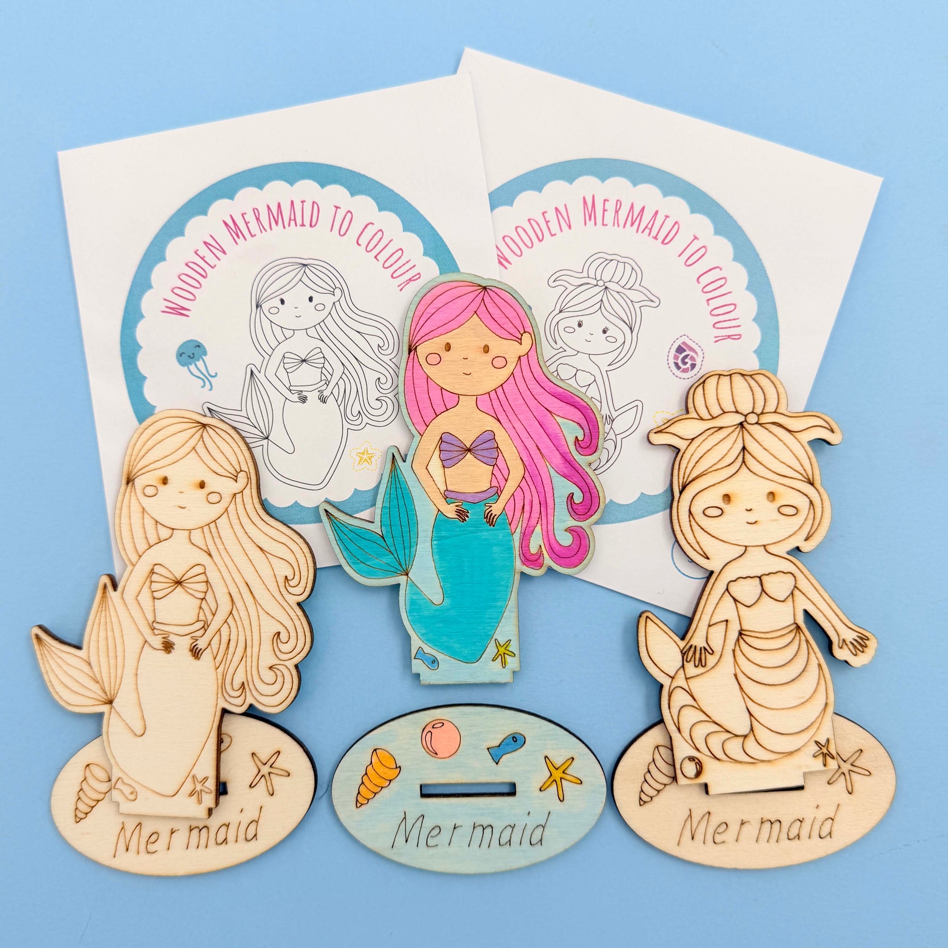 Wooden Mermaid with Base - Colour Me